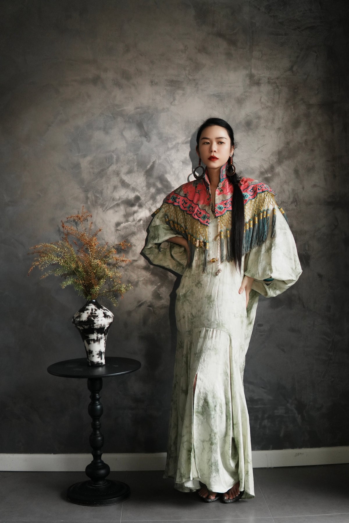 As these pieces feature premium silk and antique embroidery, they do not offer stretch. Please choose your size based on your exact measurements.