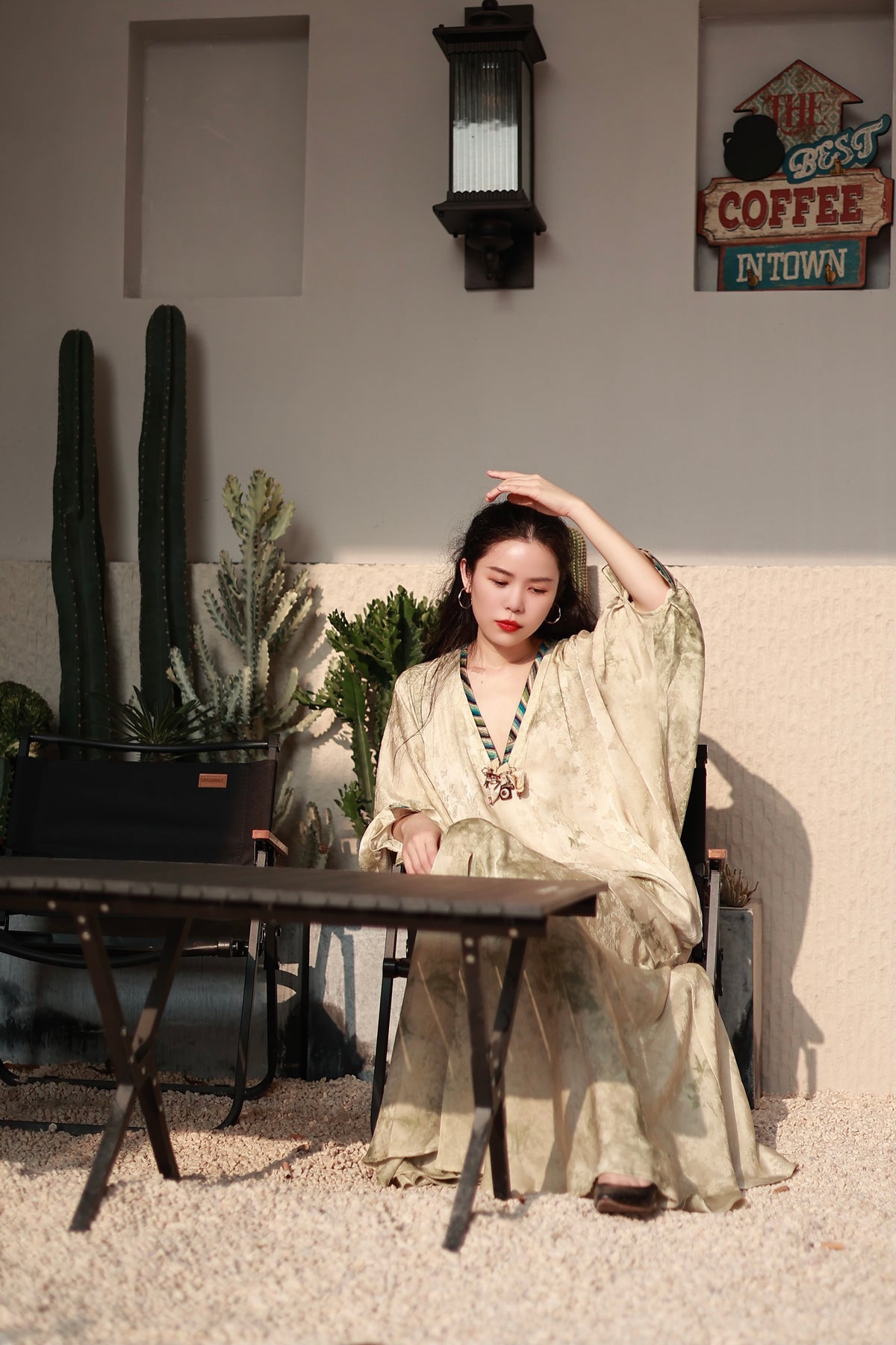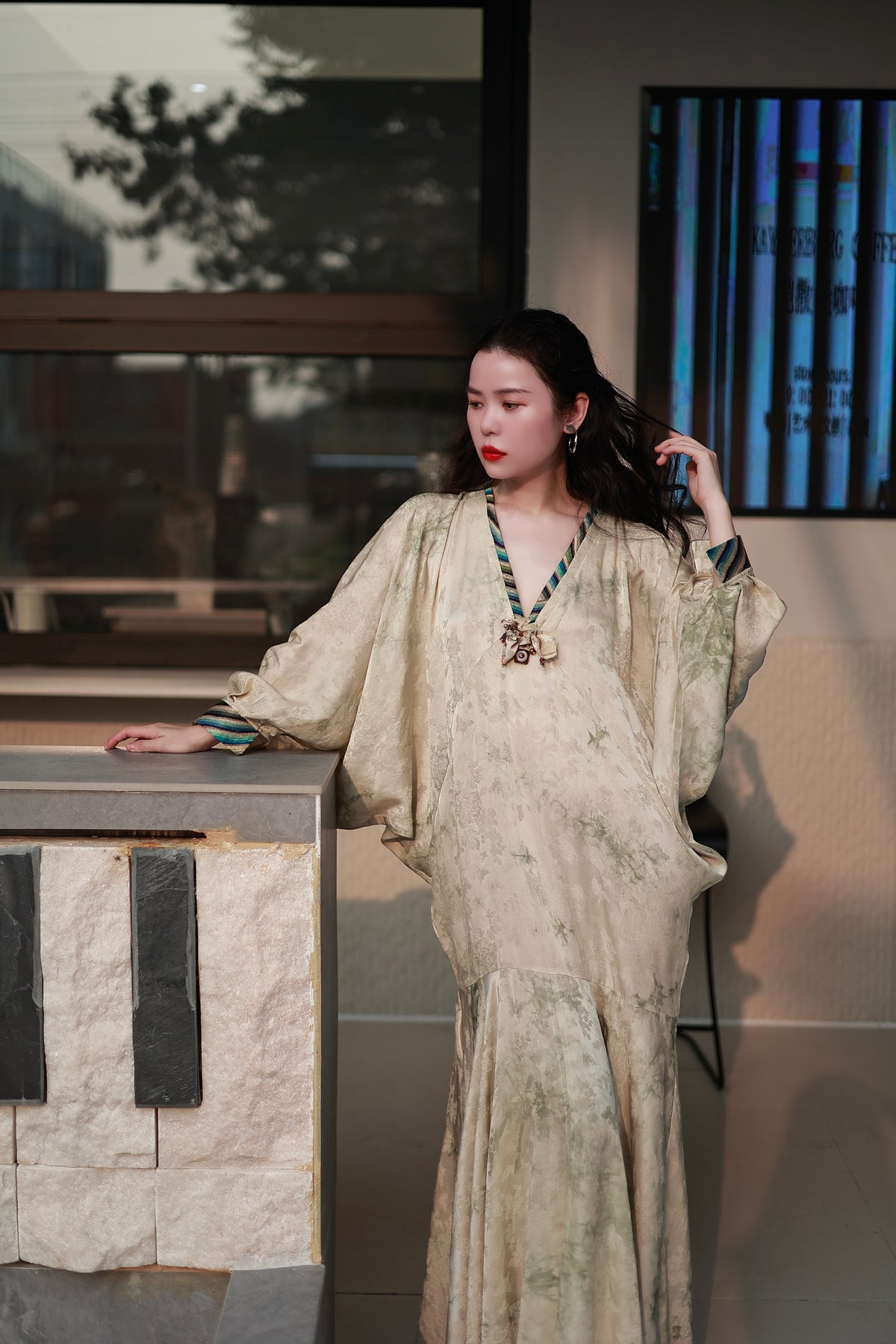 Crafted from premium Mulberry silk with authentic botanical dyes—a true gift from nature. Featuring a timeless 90s vintage silhouette that flatters all body types, this dress offers an inclusive fit that balances effortless elegance with modern metropolitan chic.