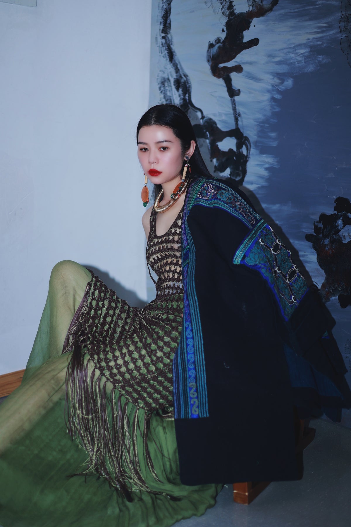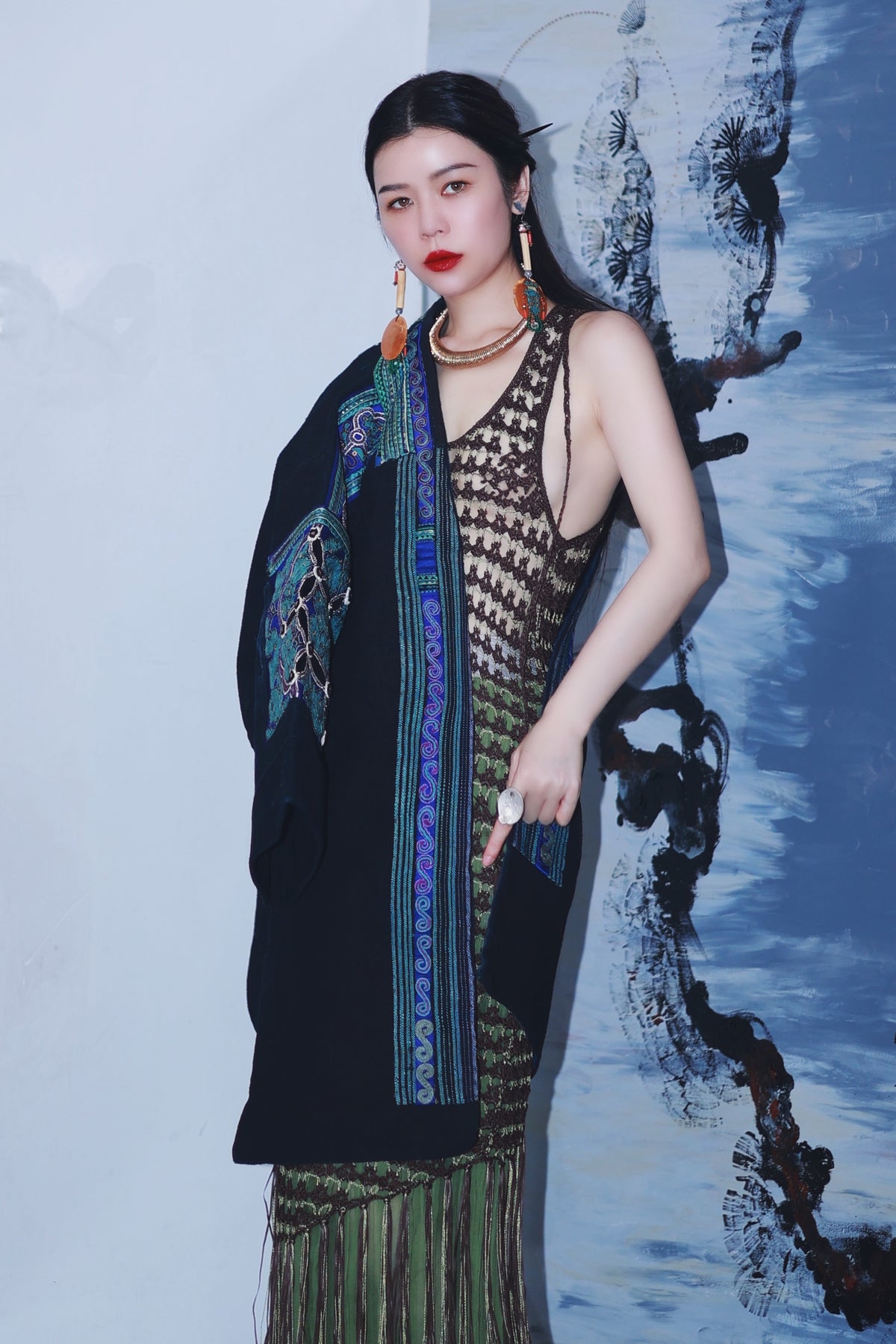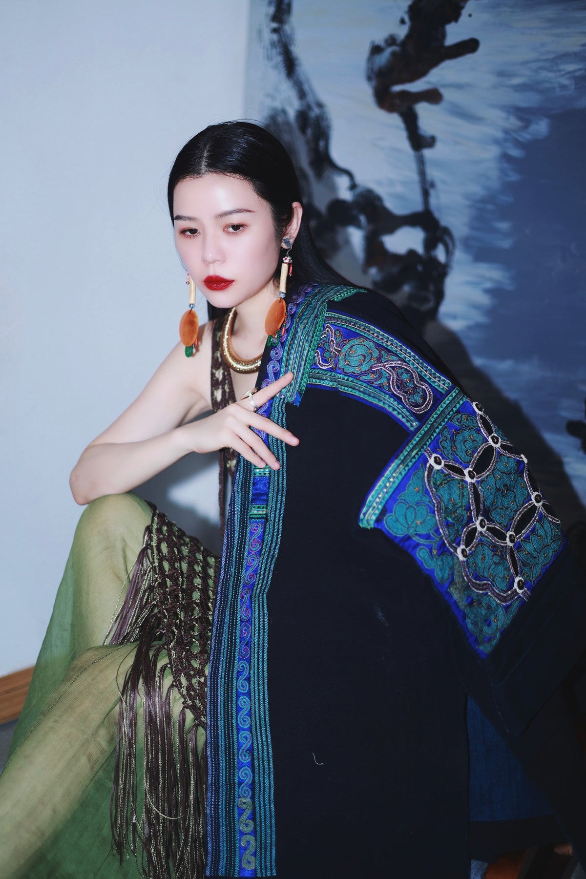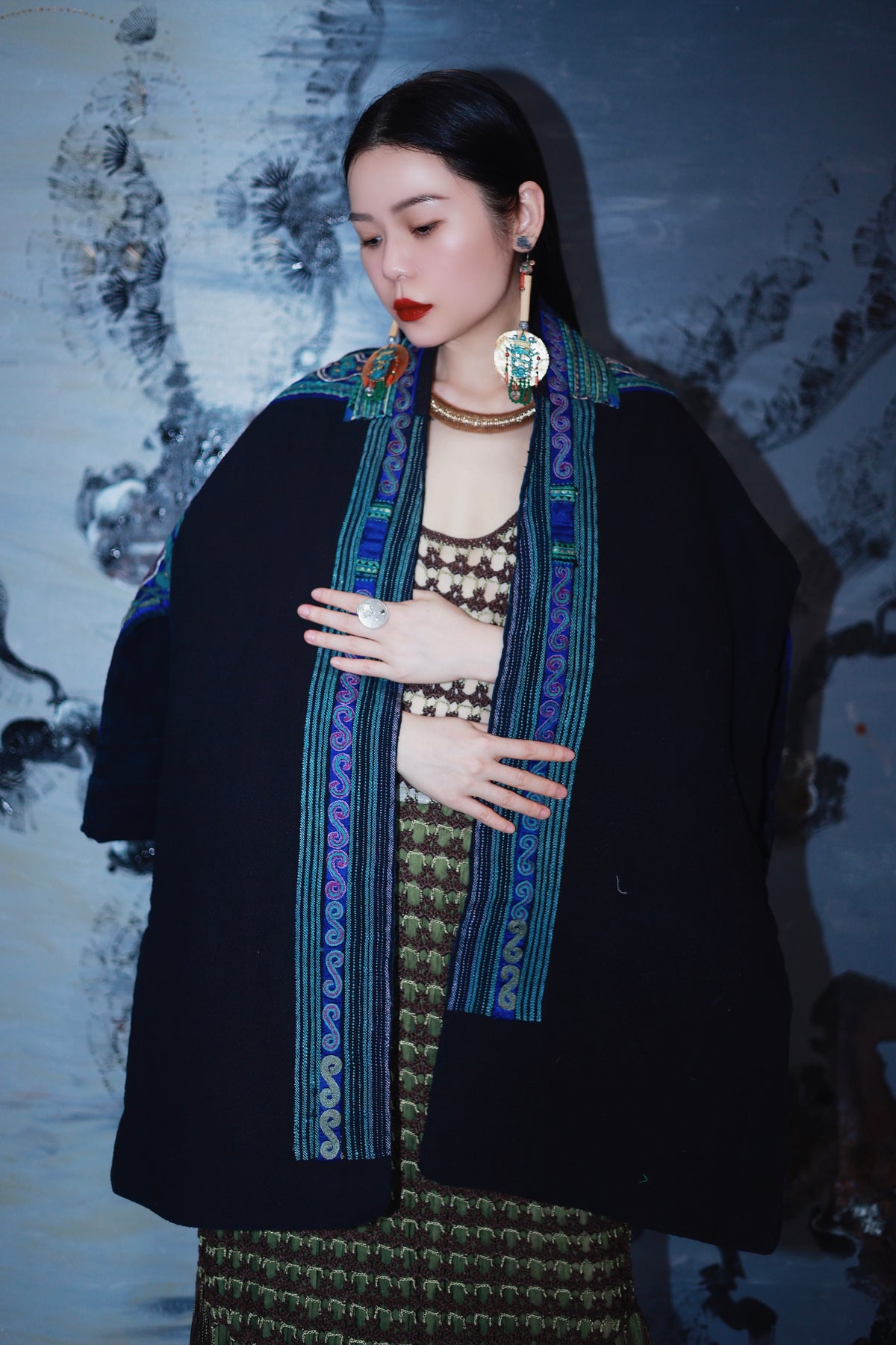 An authentic masterpiece from Guizhou, showcasing world-renowned ethnic embroidery. Featuring bold geometric motifs and vibrant storytelling stitches, this original piece reflects the raw, mystical beauty of hill-tribe artistry. A rare, high-value collectible that brings ancient mountain spirits into modern luxury.