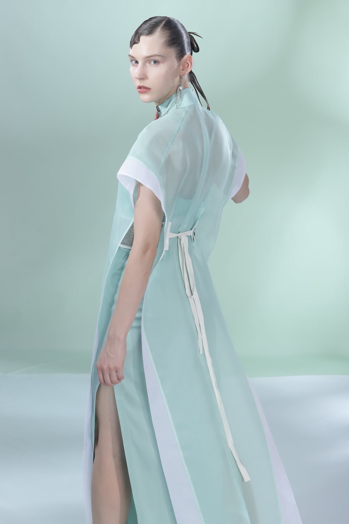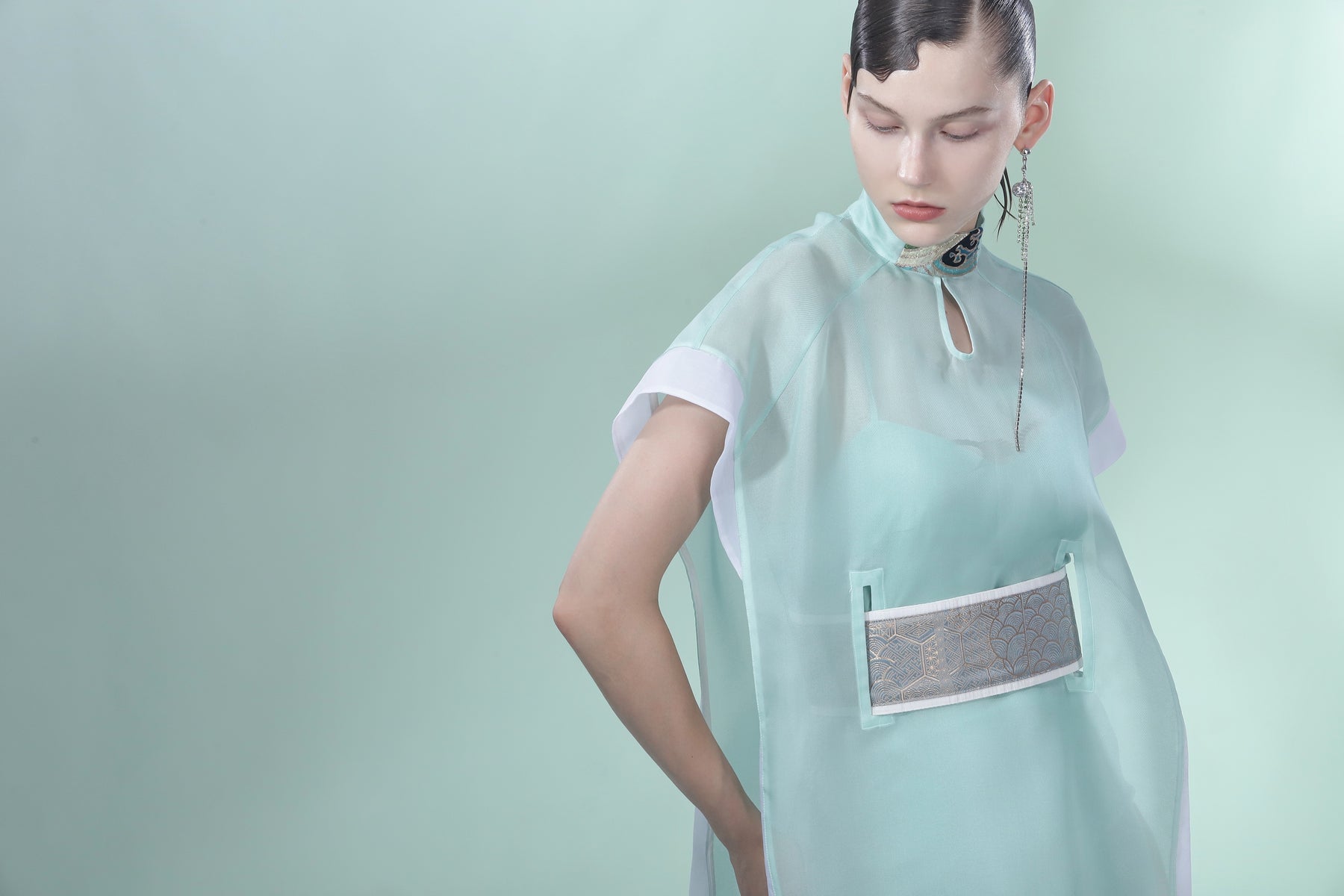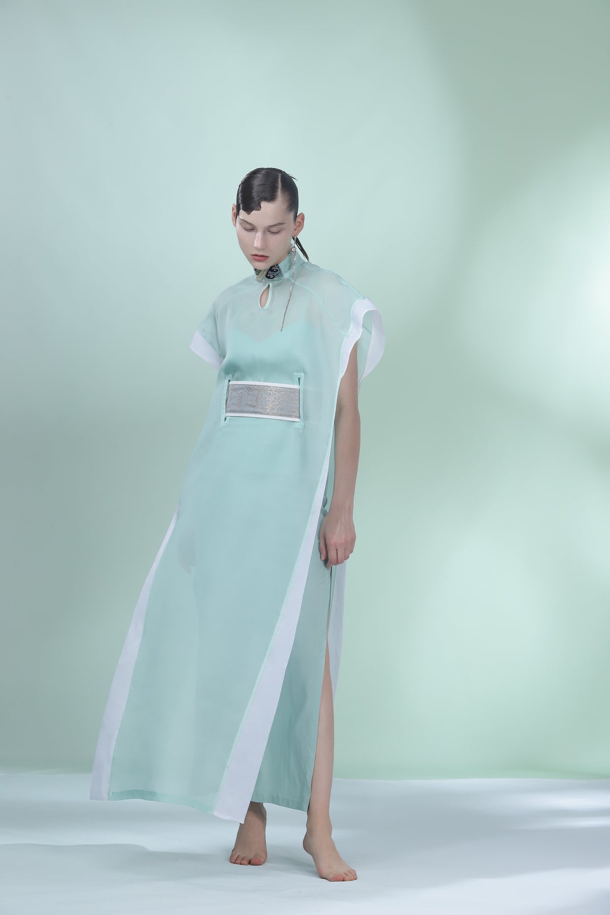 Crafted from premium mulberry silk, this reimagined overlay set exudes effortless grace. Its sheer, lightweight silhouette offers a modern take on traditional elegance, making it equally flattering for sophisticated women and youthful spirits alike. A versatile ensemble for those who seek airy comfort and timeless style.