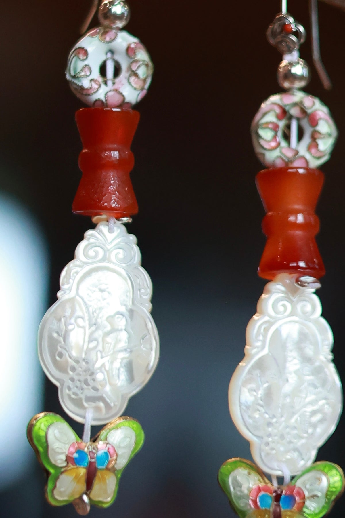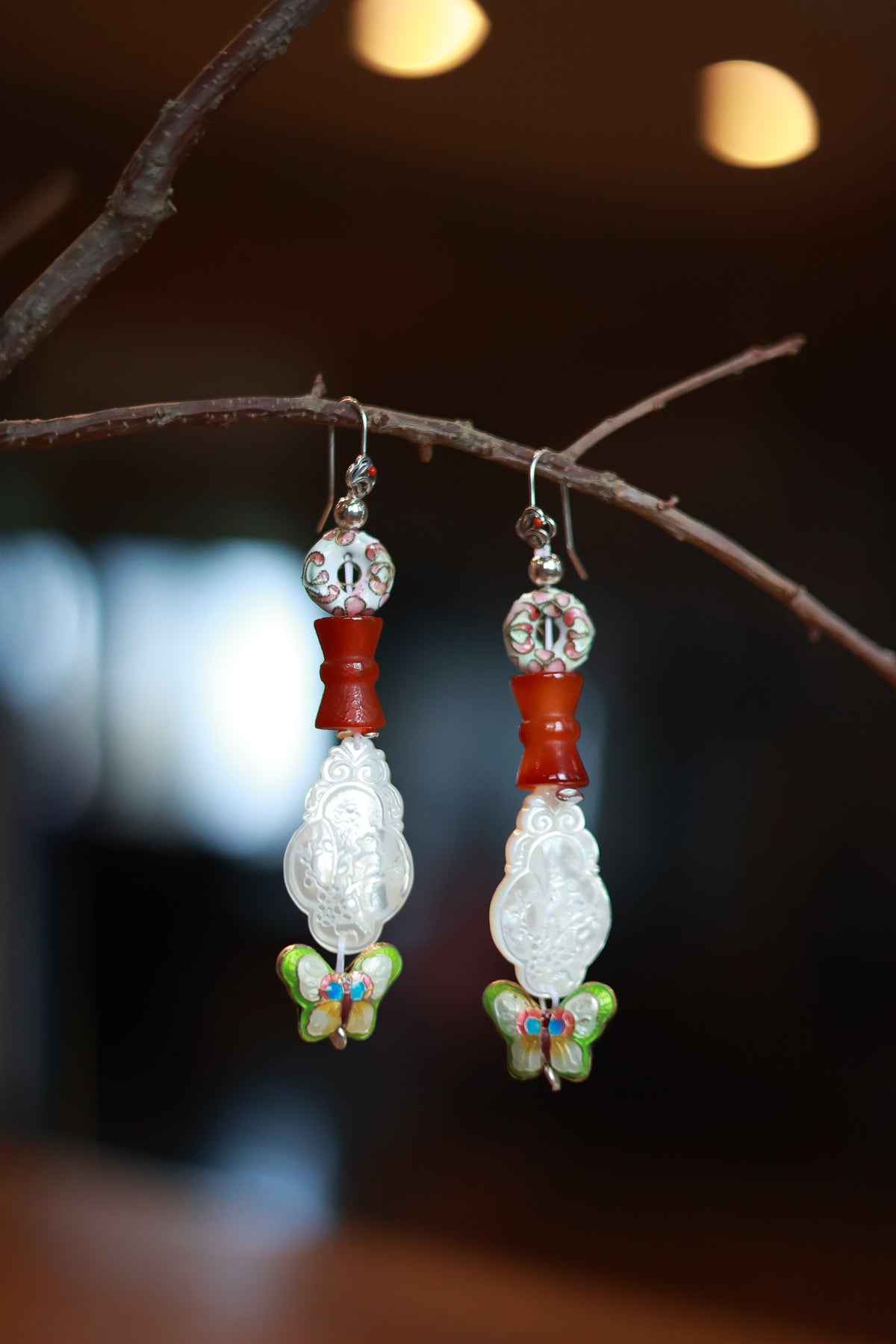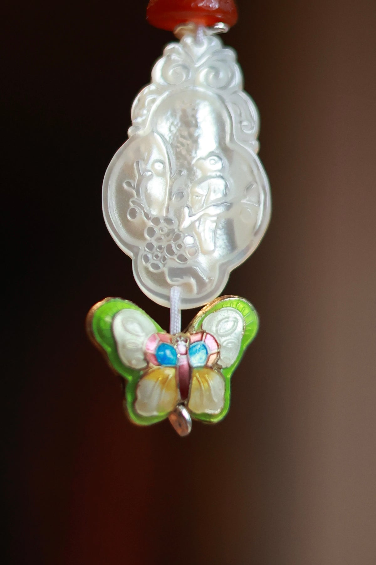 A poetic fusion of nature and artistry. Crafted with warm natural agate, shimmering shell carvings, and vibrant enamel butterflies. This elegant design symbolizes transformation and grace, offering a sophisticated statement piece that bridges timeless heritage with modern feminine charm.