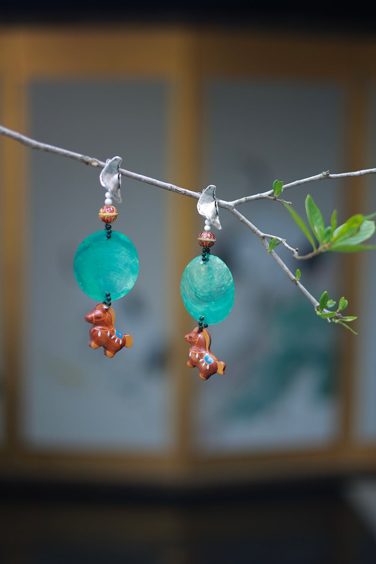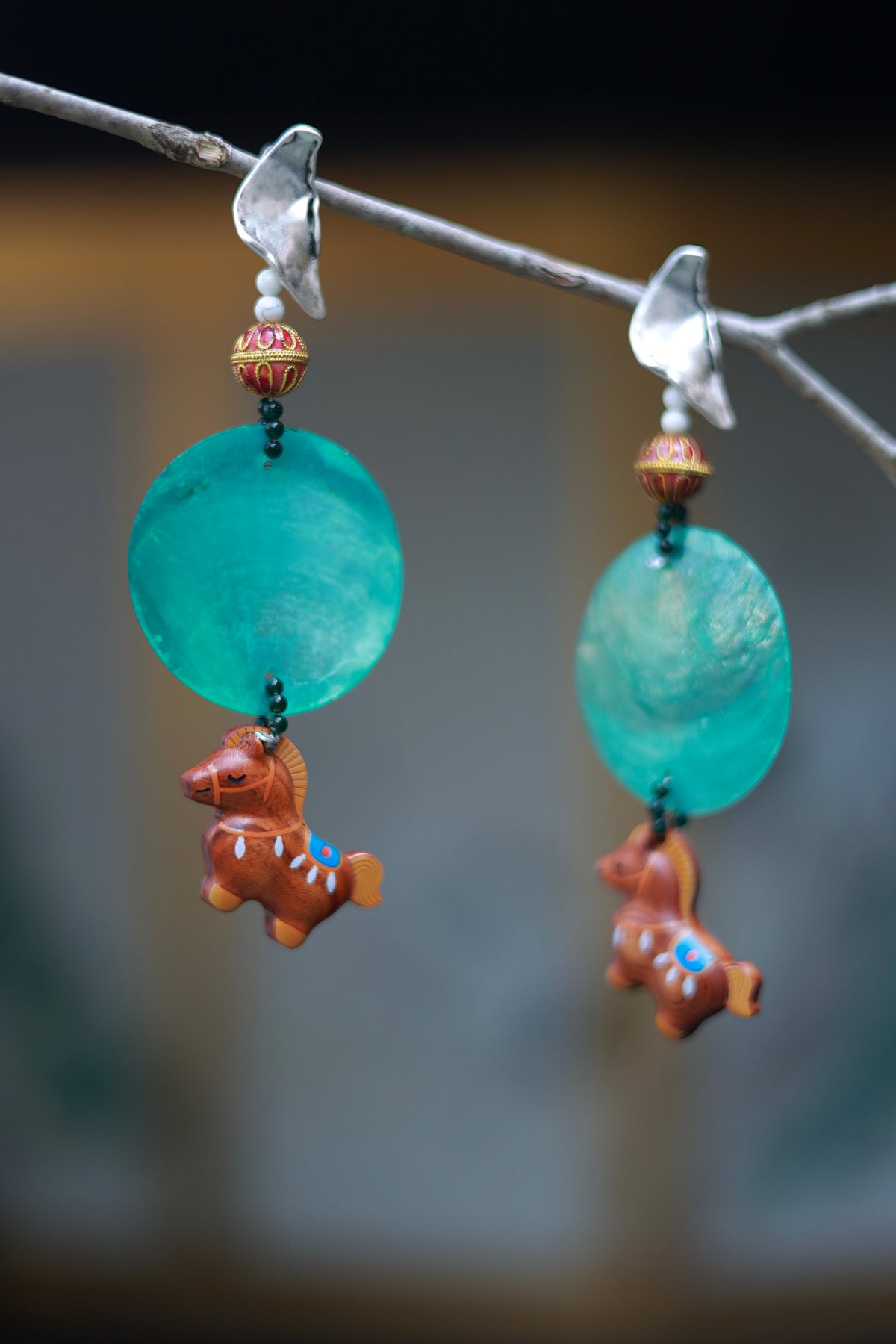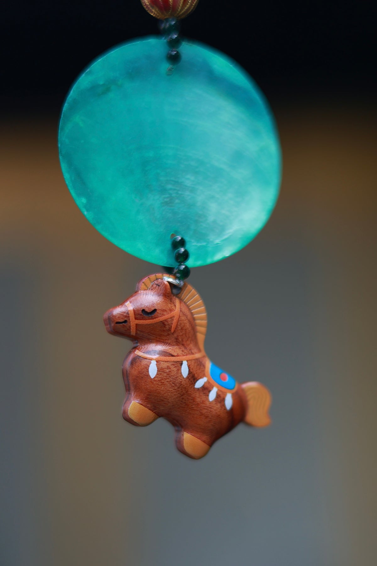 A creative fusion of symbolism and nature. Featuring hand-carved wooden horses paired with vibrant dyed shells, this design embodies the wish for 'Instant Success.' A bold, artistic statement piece that merges rustic warmth with contemporary flair.